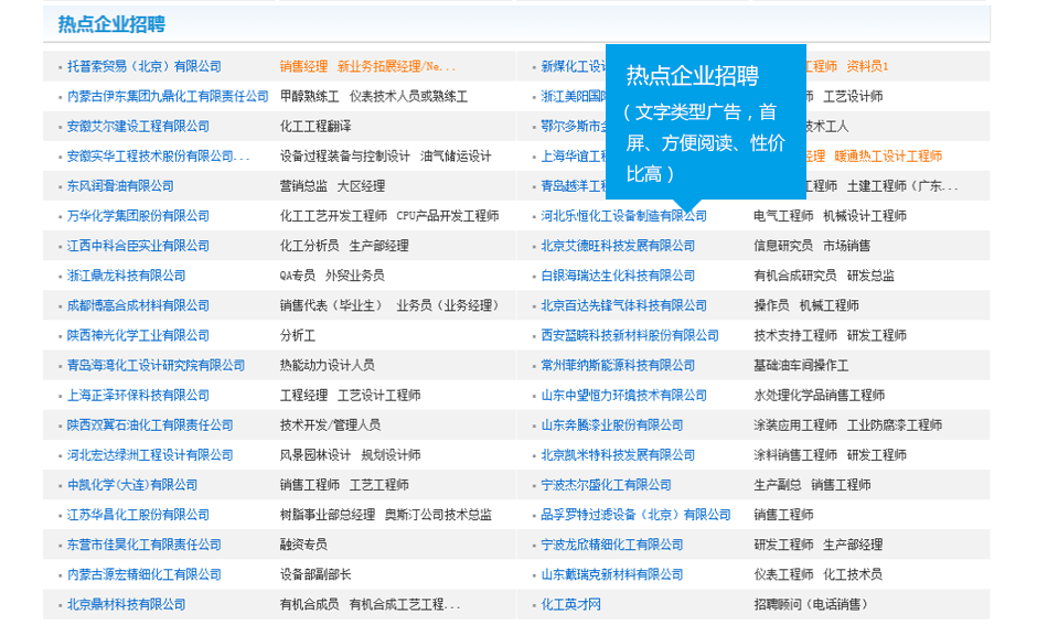移動(dòng)端品牌招聘、熱點(diǎn)招聘、知名企業(yè)招聘等廣告類(lèi)型,有效提升招職位的關(guān)注度。