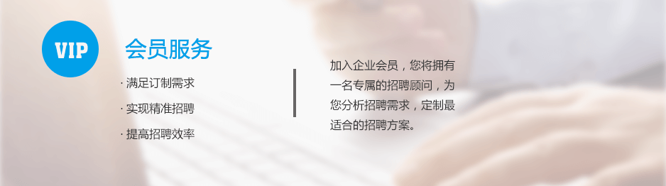 會(huì )員服務(wù)屬于網(wǎng)絡(luò )平臺服務(wù),基于龐大活躍的網(wǎng)絡(luò )平臺,滿(mǎn)足客戶(hù)對招聘職位的訂制需求。會(huì )員可以擁有獨立的企業(yè)招聘后臺,企業(yè)客戶(hù)可自行發(fā)布與管理招聘職位,使企業(yè)的招聘信息傳遞給相關(guān)的求職者。會(huì )員服務(wù)能夠滿(mǎn)足企業(yè)的日常招聘、人才儲備等招聘需求,并能根據具體的職位要求,實(shí)現精準化招聘,提高招聘效率。