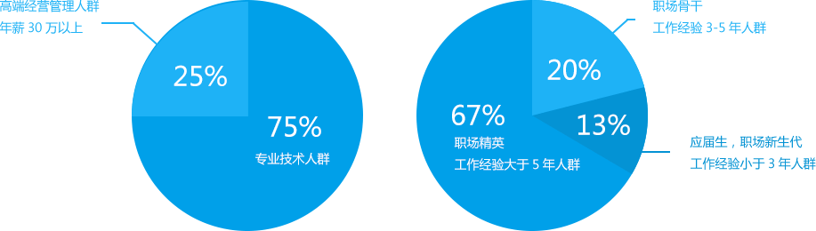 英才網(wǎng)聯(lián)的專(zhuān)業(yè)人才庫中專(zhuān)業(yè)技術(shù)人群占比頗高,可見(jiàn)專(zhuān)業(yè)技術(shù)人群非常雄厚、充足。同時(shí),對于企業(yè)客戶(hù)來(lái)講,應屆生、職場(chǎng)新生代、職場(chǎng)骨干、職場(chǎng)精英等人群可謂應有盡有,足夠滿(mǎn)足企業(yè)的日常招聘、專(zhuān)業(yè)崗位的招聘等需求。